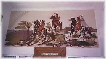 Located in the lobby of the Nowata Post Office is the 1943 mural by Oklahoman, Woody Crumbo.