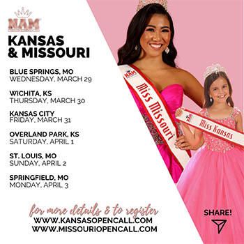 Awarding over $1.5 million in prizes, National American Miss has been voted the #1 pageant for girls ages 4-24. Those interested in finding out more about this year’s competition are welcome to attend an Open Call. To register your spot at: http://www.missouriopencall.com
