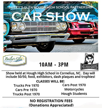 Bailey’s Glen Hough HS partnership Car Show will include 50/50 raffle, food exhibitors, dash plaques and trophies.