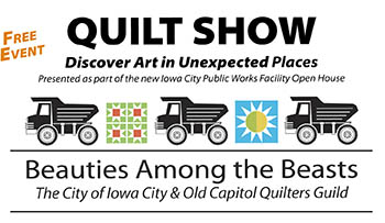 Discover Art in Unexpected Places as the Old Capitol Quilters Guild displays hundreds of quilts on and among the big trucks of the Iowa City Public Works Department. Free family event that allows families to view quilts, explore the big trucks, take part in family activities, entertainment and food trucks. A truly unique setting for quilts and a free, fun event for all ages.