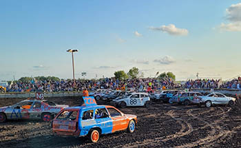 Demolition Derby in Blairstown Iowa held on Memorial Day and Labor Day weekends. One of the biggest demolition derbies in the state!!! Over 3,000 people were in attendance. Held twice a year in May and in September during Blairstown’s Sauerkraut Days Festival.