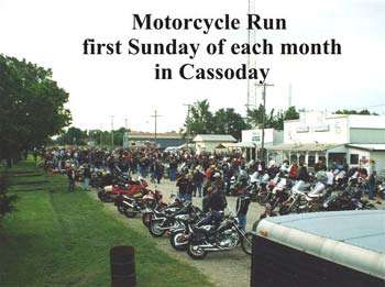 The Cassoday Cafe has become a well-known gathering place for the motorcycling community. On the first Sunday of every month, motorcycles of any and all brands (and their riders) gather in Cassoday.
