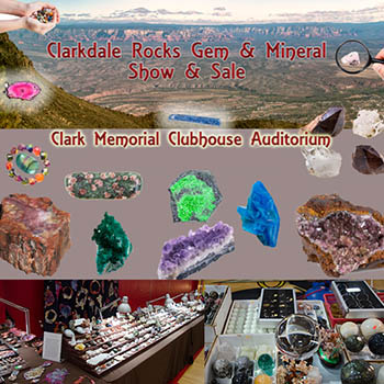 The Semi-Annual Clarkdale Gem and Mineral Show and Sale; Mingus Gem & Mineral Club, will be held at the Clark Memorial Clubhouse Auditorium in Clarkdale, Arizona.