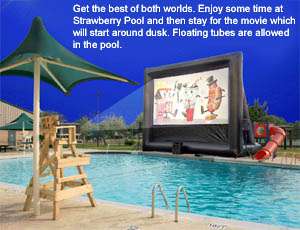 This event will be from 8:30 p.m. to 10:30 p.m. At this event, you will get to lounge around in Strawberry Swimming Pool and watch a movie on our 25’ft inflatable movie screen. Pre-admission is only $1.50 and tickets at the door will cost $2.00. Don’t miss out on this great offer; and don’t forget to bring your “floaties†to the pool.