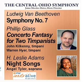 Last Concert of the Season. 14 timpani! That’s what it takes to play Phillip Glass’s “Concerto Fantasy for Two Timpanists.” From Chattanooga, John Kilkenny will be joined by Symphony timpanist, Warren Hyer for this exciting work. Cleveland composer, H. Leslie Adams’ Nightsongs, sung by Delaware resident Angel Tyler, are based on the poems of Langston Hughes and others. The concert and season will end with Beethoven’s Seventh Symphony, described as “a feeling of true spontaneity where the notes seem to fly off the page.”