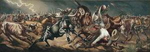 Events will begin at 2:00 p.m. at the downtown post office located at 200 North Texas Avenue. Local historian and teacher Trudy Lewis will give a brief talk about the history of Odessa as portrayed in the mural. Following her talk, participants will convene at 2:45 p.m. in the Rodman Auditorium at the Ellen Noël Art Museum. Adair Margo, president of the Tom Lea Institute will talk about Tom Lea as an artist, writer and historian. She will discuss the ‘Stampede’ mural in particular and its importance to the art and history of Odessa.